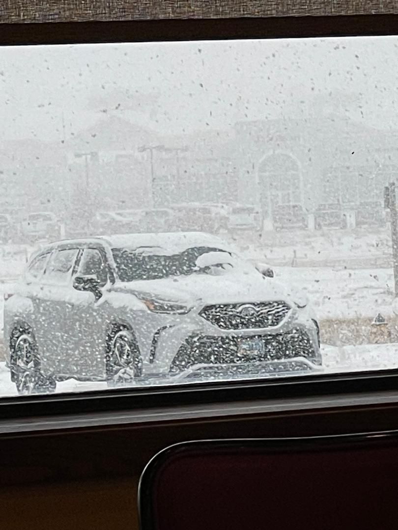 I wondered why my headlights were so dim while driving recently. They were covered with snow, as can be seen. An old geezer said, "back in my day, the heat from the bulbs melted the snow and we didn't have to worry about it"